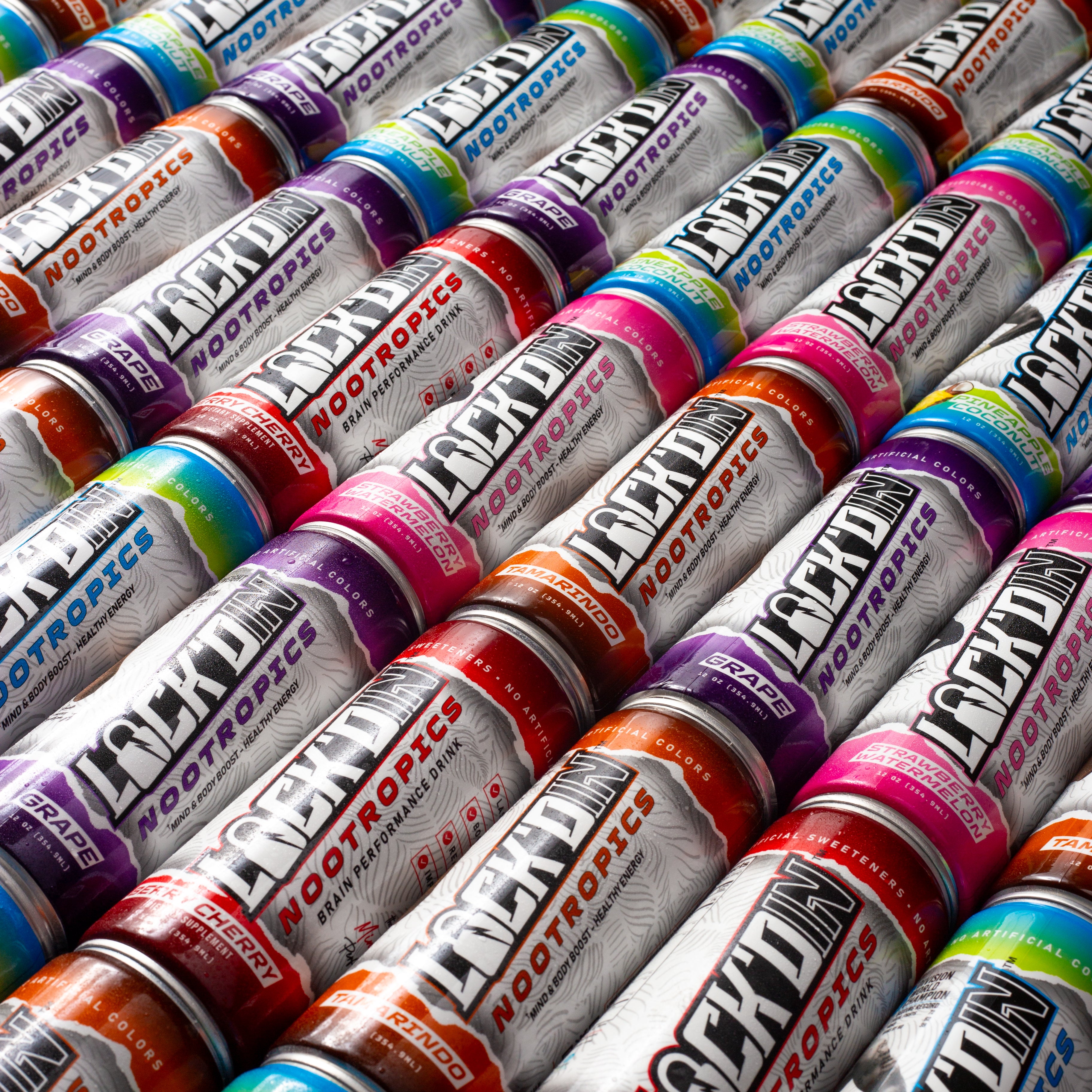 Nootropic-enhanced energy drinks designed to fuel your brain and boost your grind.